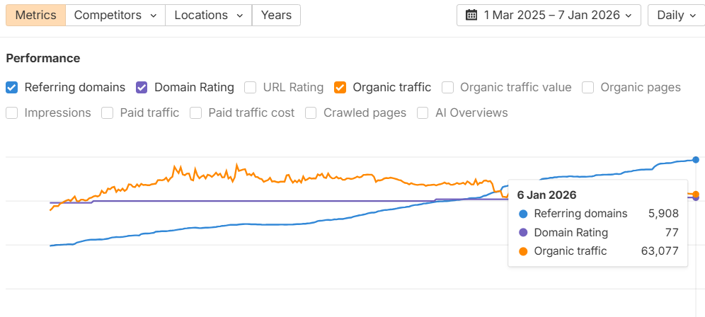 A result-driven SEO campaign that strengthened domain authority, doubled referring domains, and accelerated organic traffic growth through high-quality link acquisition.